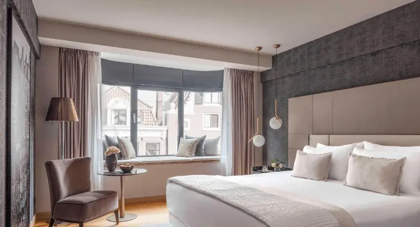 The property offers 402 guest rooms and suites, combining heritage architecture with contemporary comfort. A substantial number of rooms are configured as twin rooms, allowing flexible accommodation for corporate delegates and group participants. The hotel is situated approximately 22 kilometres from Amsterdam Schiphol Airport, ensuring efficient transfers for international events and large group arrivals.
