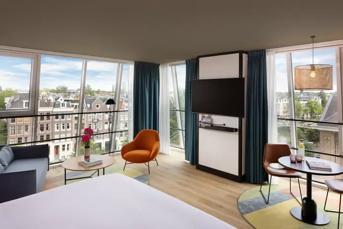 The property features 163 guest rooms, designed with a clean and functional layout that supports both corporate and leisure group stays. A number of rooms are available as twin rooms, offering practical accommodation solutions for delegates and incentive participants requiring separate beds. The hotel is located approximately 14 kilometres from Amsterdam Schiphol Airport, ensuring straightforward airport transfers for international groups.